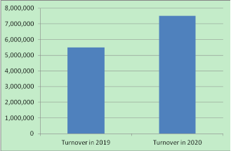 دوران في عام 2019: معدل دوران 500،000 دولار أمريكي في عام 2020: زيادة معدل الزيادة: 36.36 ٪
